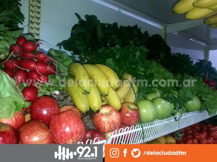 Comprando en Verulerías Las Nodrizas, el sábado, dos kilos de peras o dos kilos de manzanas salen 100 pesos, dos kilos de mandarinas a 80 pesos, dos kilos de bananas salen 80 pesos, dos atados de acelga cuestan 100 pesos, tres kilos de cebollas cuestan 100 pesos, y la bolsa de papas está a 280 pesos.