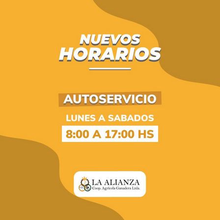 A partir de las 8.00 horas, hasta las 17.00, de corrido, el Autoservicio de Cooperativa La Alianza trabajará de lunes a sábados.