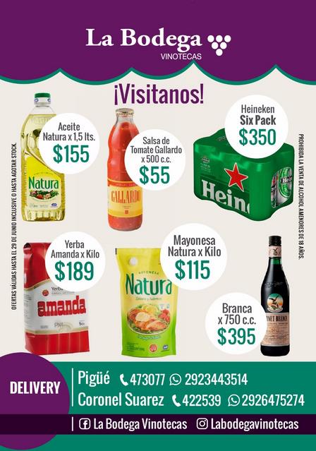 El Fernet Branca de 750 centímetros cúbicos cuesta 395 pesos, la mayonesa Natura por kilo está a 115 pesos, la yerba Amanda por kilo cuesta 189 pesos y el six pack de Heineken está a 350 pesos.