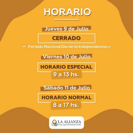 La Alianza dio a conocer los horarios de este fin de semana largo en sus instalaciones de Irigoyen 229 de Pigüé.