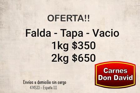 El kilo de tapa, vacío, y falda, cuesta 350 pesos, mientras que, los dos kilos están a 650 pesos.