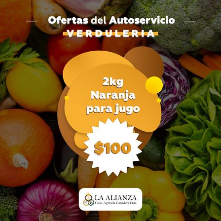 Ahora en la Sección Verdulería del Autoservicio de Cooperativa La Alianza dos kilos de naranja para jugo salen 100 pesos y dos kilos de manzana deliciosa cuestan 100 pesos.