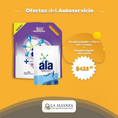 La mayonesa BC de 250 gramos sale 29.75 pesos, el jabón líquido Ala de tres litros más el jabón líquido de Ala de 800 mililitros cuestan 426.80 pesos, y los 800 gramos de Zucoa Max Instantáneo están a 120.90 pesos.
