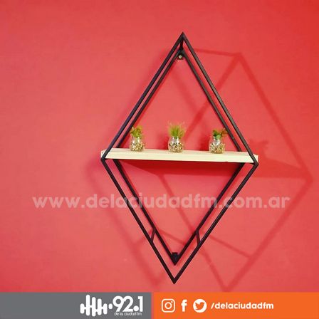 Los estantes en forma de rombo integran trabajos en madera y hierro con tareas a medida.