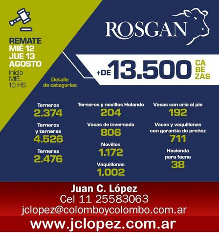Las consultas pueden hacerse con el representante de Pigüé y la zona: Juan Carlos López al celular 1125583063, al mail Esta dirección de correo electrónico está siendo protegida contra los robots de spam. Necesita tener JavaScript habilitado para poder verlo. o en el portal www.jclopez.com.ar