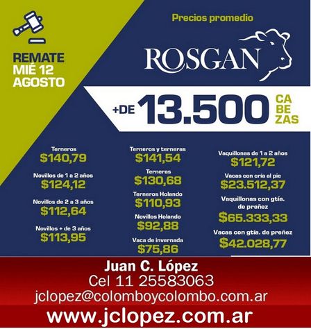 La consignataria comunica la fecha del próximo Rosgan 28 de Agosto.