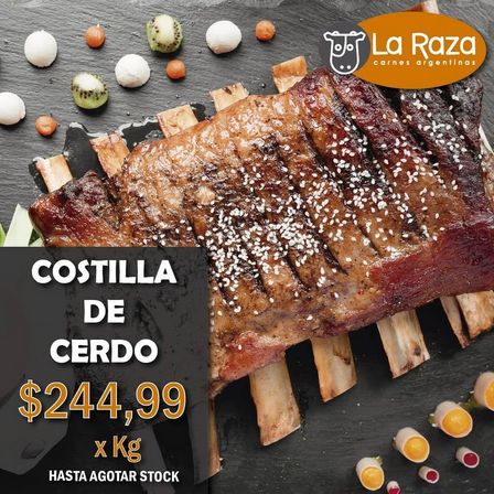 El kilo de costilla de cerdo está a 244.99 pesos hasta agotar el stock disponible en Pellegrini 276 de la ciudad.