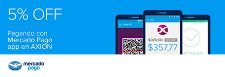 El mensaje dice "Axion y Mercado Pago te traen más beneficios. 5 por ciento de descuento para todos los combustibles cargando con la aplicación de Mercado Pago en tu celular. Es válida del lunes 24 al domingo 30 de agosto de 2020 inclusive".