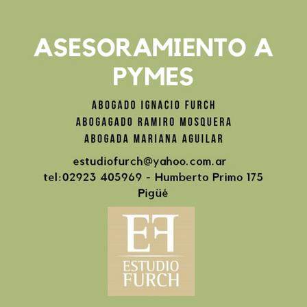 Los abogados Furch, Mosquera Massa y Aguilar, desde su estudio de Humberto Primo 175 de Pigüé, brindan asesoramiento a PYMES y emprendedores.
