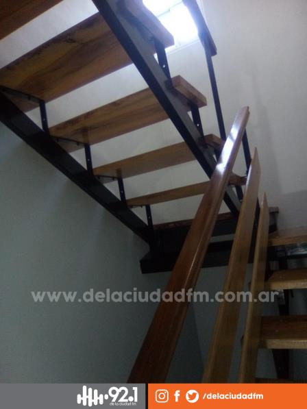 En una vivienda de la ciudad los trabajos de pintura se realizaron una escalara combinada de hierro y madera.