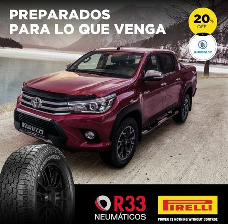 Válida desde el viernes 2 al sábado 24 de octubre está vigente esta propuesta de un 20 % de descuento más 12 cuotas sin interés en los productos de auto y camioneta marca Pirelli aro 15 o superior.