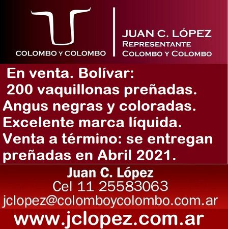 Las consultas pueden hacerse con el representante de Pigüé y la zona Juan Carlos López, al celular 11 25 58 30 63, al mail Esta dirección de correo electrónico está siendo protegida contra los robots de spam. Necesita tener JavaScript habilitado para poder verlo., o en el portal www.jclopez.com.ar