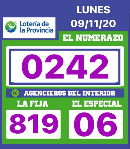 El numerazo es el 0242, la fija el 819 y el especial el 06.