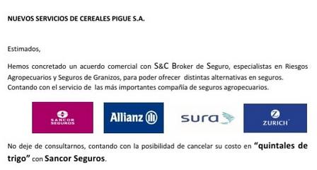 Cereales Pigüé incorpora toda la experiencia de S y C Brokers de Seguros a través de las coberturas contra granizo y riesgos agropecuarios con las pólizas de Sancor Seguros, Allianz, Sura y Zurich.