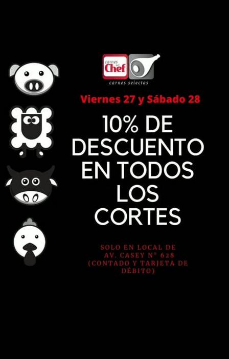 Carnes del Chef tiene 10 % de descuento viernes y sábado