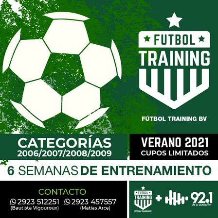 Esta propuesta de Fútbol Training BV está dirigida a a chicos de las categorías 2006, 2007, 2008 y 2009 con cupos limitados para el verano.