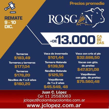 Colombo y Colombo dio a conocer los precios promedio del Rosgan de diciembre