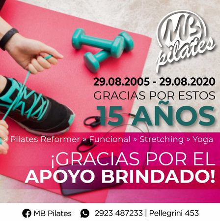 MB Pilates recibe consultas al (02923) 40 – 30 – 46, al 15 – 48 – 72 – 33, o en Pellegríni 453. Pigüé.