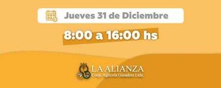 El jueves, 31 de diciembre, el Autoservicio de Cooperativa La Alianza, trabaja de 8.00 a 16.00 horas.