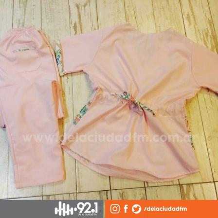 Abymart confeccionó un ambo de dama con chaqueta y pantalón rosas con detalles.