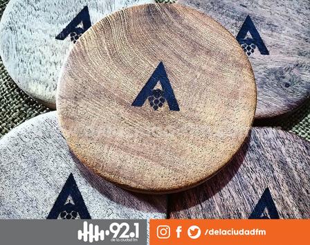Piro Hué está preparando posavasos de madera, pirograbados, para la cervecería artesanal Astra.