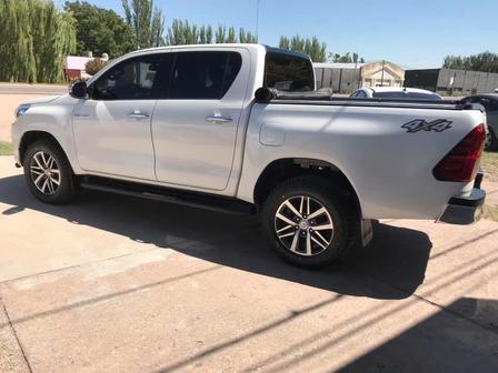 Una pick up, color blanca, Toyota Hilux, versión SRX, modelo 2016, con 121.000 kilómetros.