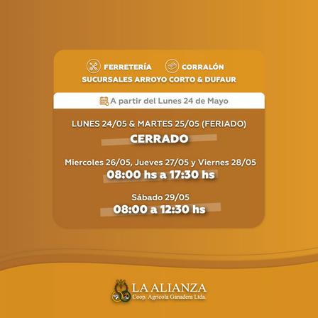 Horarios especiales tienen esta semana la Ferretería y el Corralón de Cooperativa La Alianza
