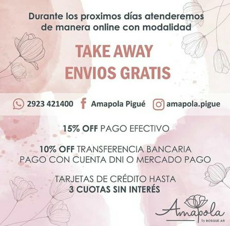 Ahora Amapola cuenta con 15 por ciento de descuento por pago en efectivo, tiene un 10 por ciento de rebaja por transferencia bancaria o vía Cuenta DNI y Mercado Pago.