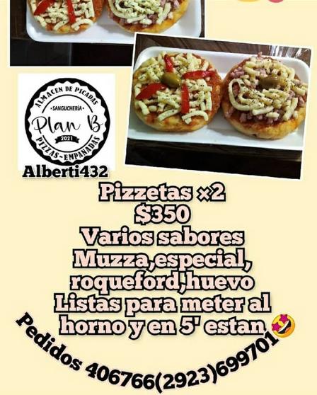 Pizzetas de muzza, especiales, roquefort, y huevos pueden hallarse, dos por 350 pesos, en Plan B.