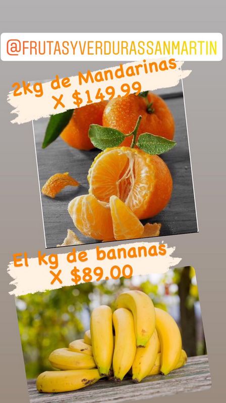 Tres kilos de papas salen 99.99 pesos, los tres kilos de cebollas 99.99 pesos, el kilo de bananas 89 pesos, y los dos kilos de mandarinas 149.99 pesos