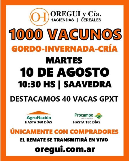 Confirmaron 1.000 vacunos para el remate de Oregui y Cía.