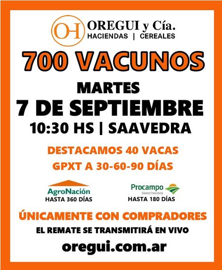 Esta subasta será transmitida en vivo a través del portal www.oregui.com.ar