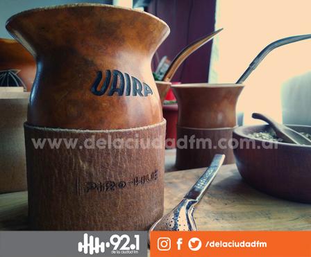 Piro Hué efectúa trabajos en mates, tablas, yerberas, y cartelería sobre madera.