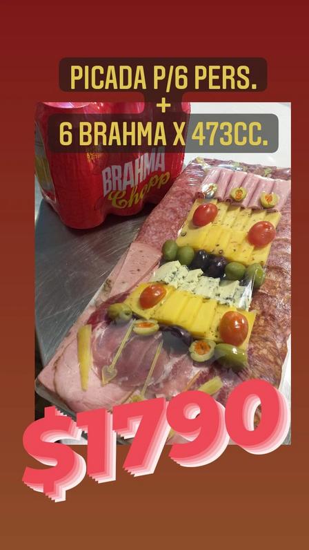 Por 1.790 pesos es posible contar con una picada para seis personas y 6 latas de cerveza Brahma de 473 centímetros cúbicos.