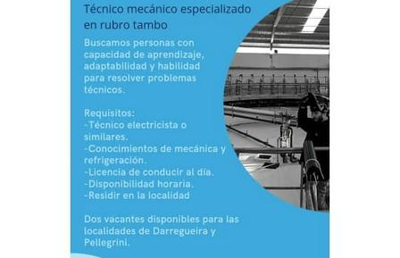 La Lic. María Solignac busca Técnico mecánico especializado en rubro tambo.