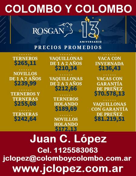 Colombo y Colombio presentó el resumen de precios del último Rosgan