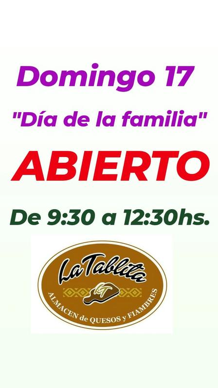Con opciones jamón cocido, lomo ahumado, bondiola, mortadela, queso barra y paleta La Tablita, el domingo, por el Día de la Familia, abre sus puertas La Tablita.