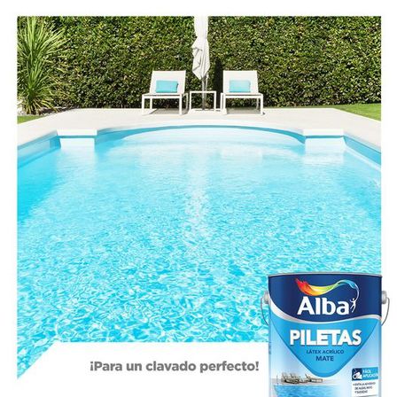 Alba Piletas Acrílico es un látex mate con una formulación especial, a base de polímeros acrílicos, que le otorga a la película impermeabilidad, gran poder cubritivo y flexibilidad.