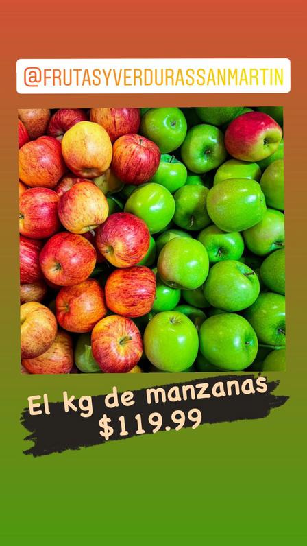 El de manzanas está a 119.99 pesos en Frutas y Verduras San Martín.