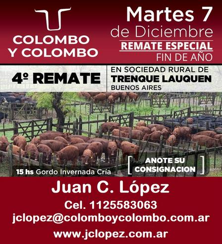 La subasta presencial tendrá lugar en el la Sociedad Rural de Trenque Lauquen. Será el remate Especial Fin de Año. Se invita a compradores y remitentes al almuerzo previo.