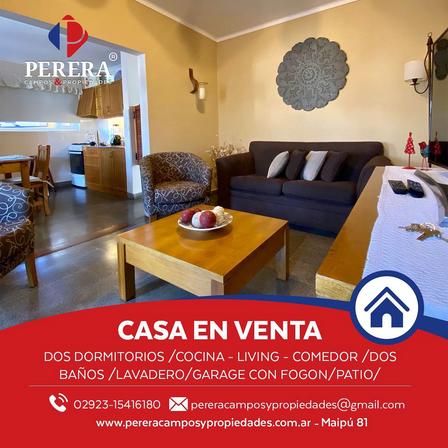 Se trata de un inmueble que tiene dos dormitorios, cocina, living, comedor, dos baños, lavadero, garage, fogón y patio.