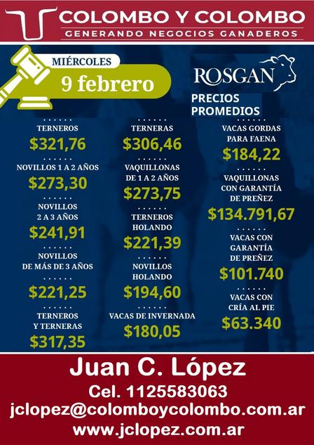 Colombo y Colombo dio a conocer los precios del Rosgan de ayer