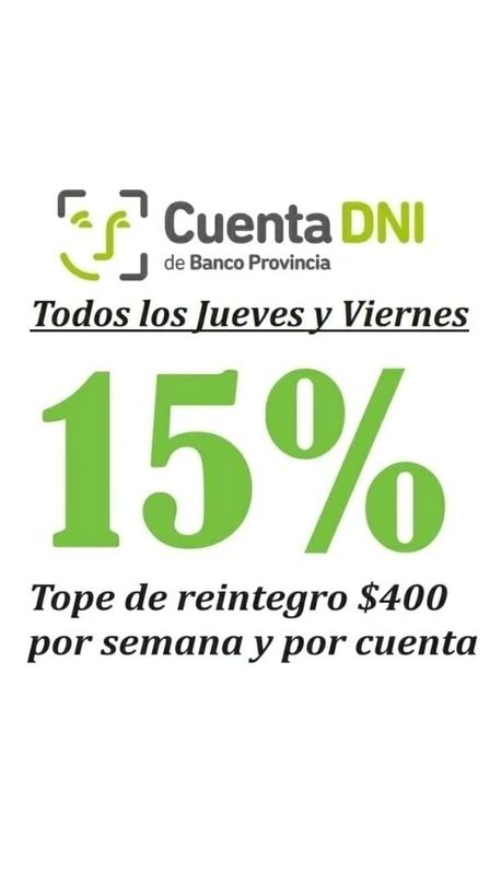 El 15 por ciento de ahorro con Cuenta DNI, del Banco Provincia, tiene un tope de reintegro de 400 pesos por cuenta y por semana.