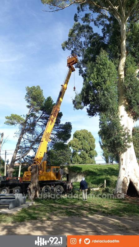 Para realizar tareas de poda alquilaron el Servicio de Grúa Freddy