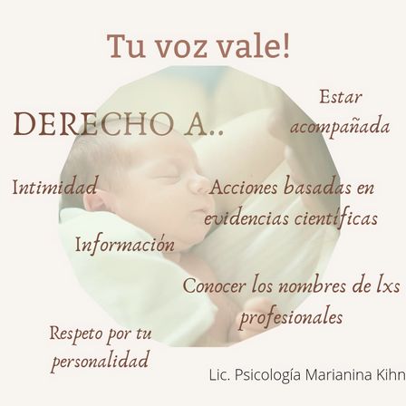 El mensaje de la Lic. en Psicología Marianina Kihn expresa que "esta es la semana para hacer visible lo que ocurre en muchísimas oportunidades durante los partos, ya que la violencia obstétrica y la vulneración de derechos suelen ser moneda corriente en las experiencias.