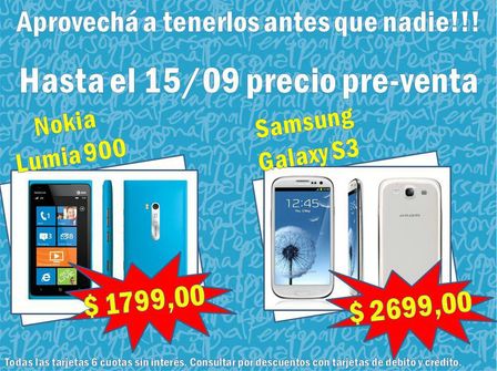 El nuevo Samsung Galaxy S 3 tiene un valor de pre venta a $ 2.699. El nuevo Nokia Lumia 900 puede conseguirse por $ 1.799.
