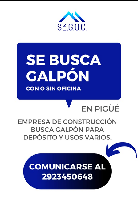 SEGOC está buscando galpón para alquilar en Pigüé, con o sin oficina, para depósito y usos varios.