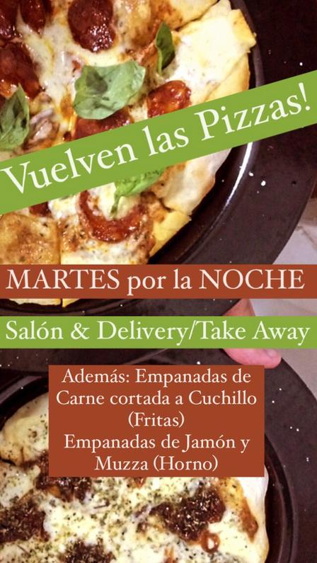 Para hoy, martes, por la noche, hay pizzas, empanadas de carne cortada a cuchillo y de empanadas de jamón y muzzarella.