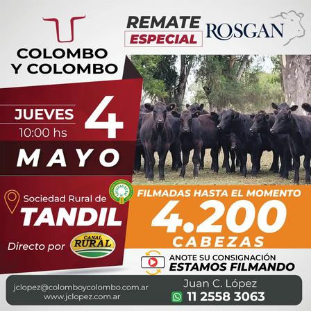La casa consignataria tiene filmadas 4.200 cabezas de invernada para el Rosgan Especial de Colombo y Colombo de mañana, desde Tandil y que será transmitido en vivo por Canal Rural, a partir de las 10.00 horas de ese día.