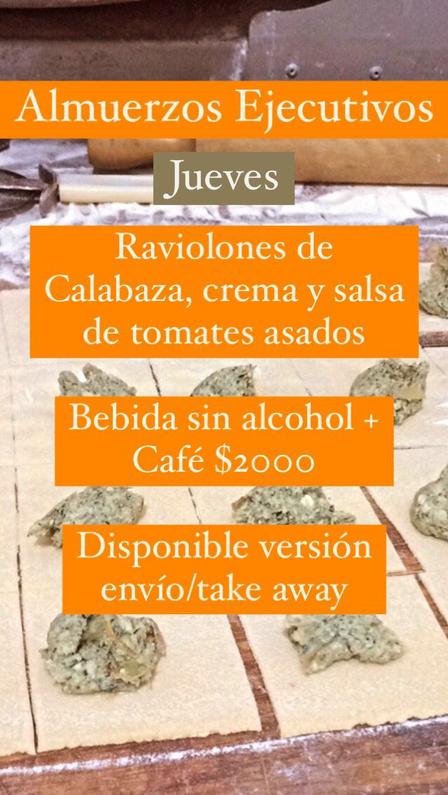 Fuego Sagrado Restaurant cocina raviolones de calabaza, crema, y salsa de tomates asados, más bebida sin alcohol, más café a 2.000 pesos.